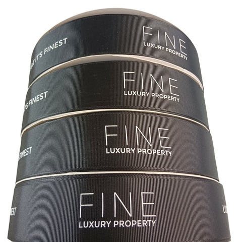 Fábrica de luxo impresso preto poliéster fita rolo personalizado única ou dupla face com logotipo personalizado para presentes